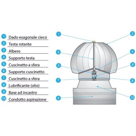 I vantaggi del suo montaggio su una canna fumaria sono molteplici, fra cui i più interessanti sono il migliorare la capacità di aspirazione, contribuendo a risolvere problemi di tiraggio, evitare fastidiosi ritorni di fumo ed impedire l’ingresso di corpi estranei, scongiurando pericolose ostruzioni. Grazie alla efficace azione di aspirazione sviluppata, è utilizzabile anche per la ventilazione di capannoni industriali, magazzini, serre, allevamenti ed abitazioni umide e spesso chiuse. Non richiede alcuna manutenzione ed impiega la naturale forza delle correnti d’aria ascensionali e del vento.